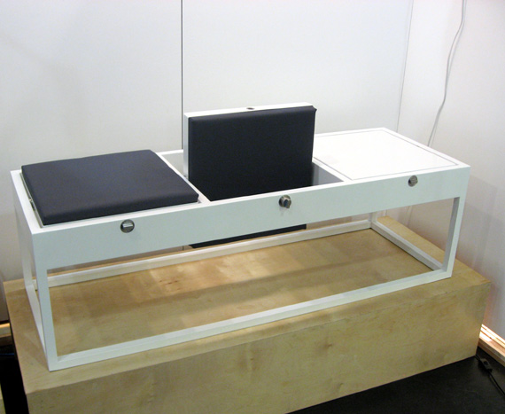 Really, anything heavy and interesting is a bookend. Here, a charcoal-heated iron that Mike found in India keeps our literature in place and looks quite sculptural in its new found role.