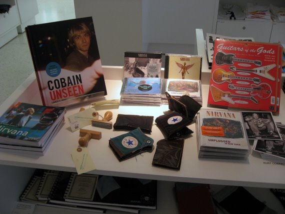 Preparing for the Kurt Cobain exhibit, they had grunge rock memorabilia and unexpected tributes like the Converse hightop wallet.