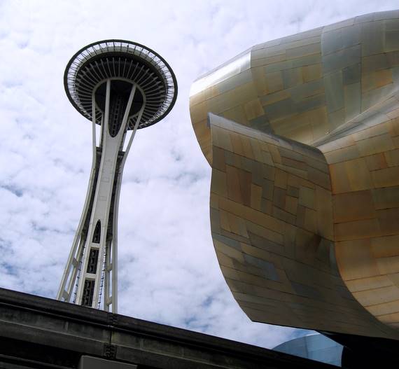 The Space Needle framed by the Frank Geary Sci-Fi Museum, sets the scene for a design-filled trip.